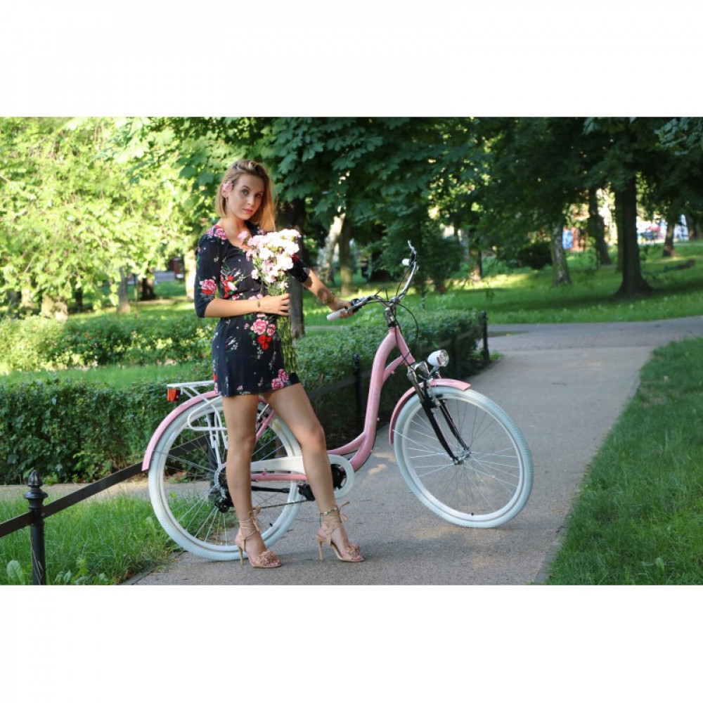 Dámsky retro bicykel 28" Lavida 7-prevodový hlinikový [A] Ružový, biele kolesá