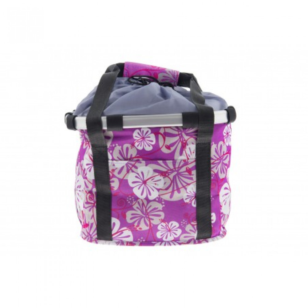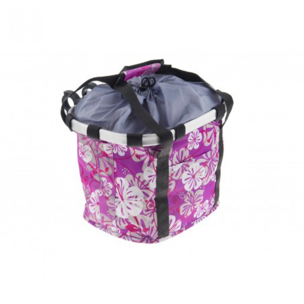 Košík na riadidlá Clip fialový s kvietkami
