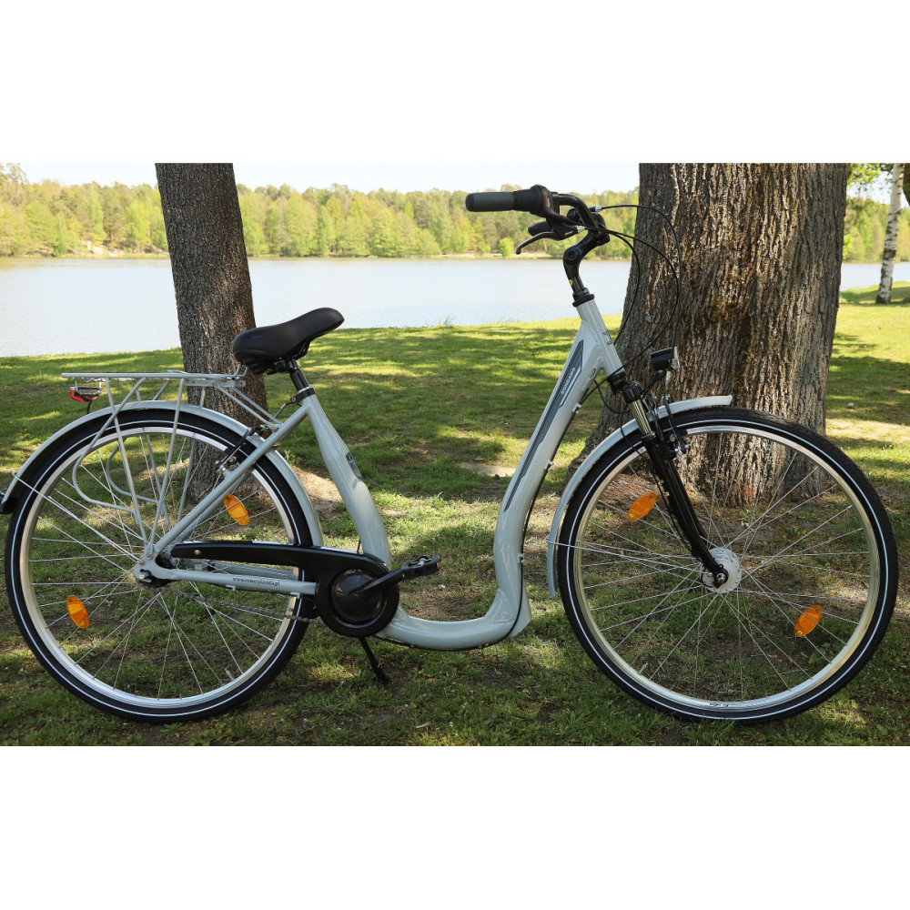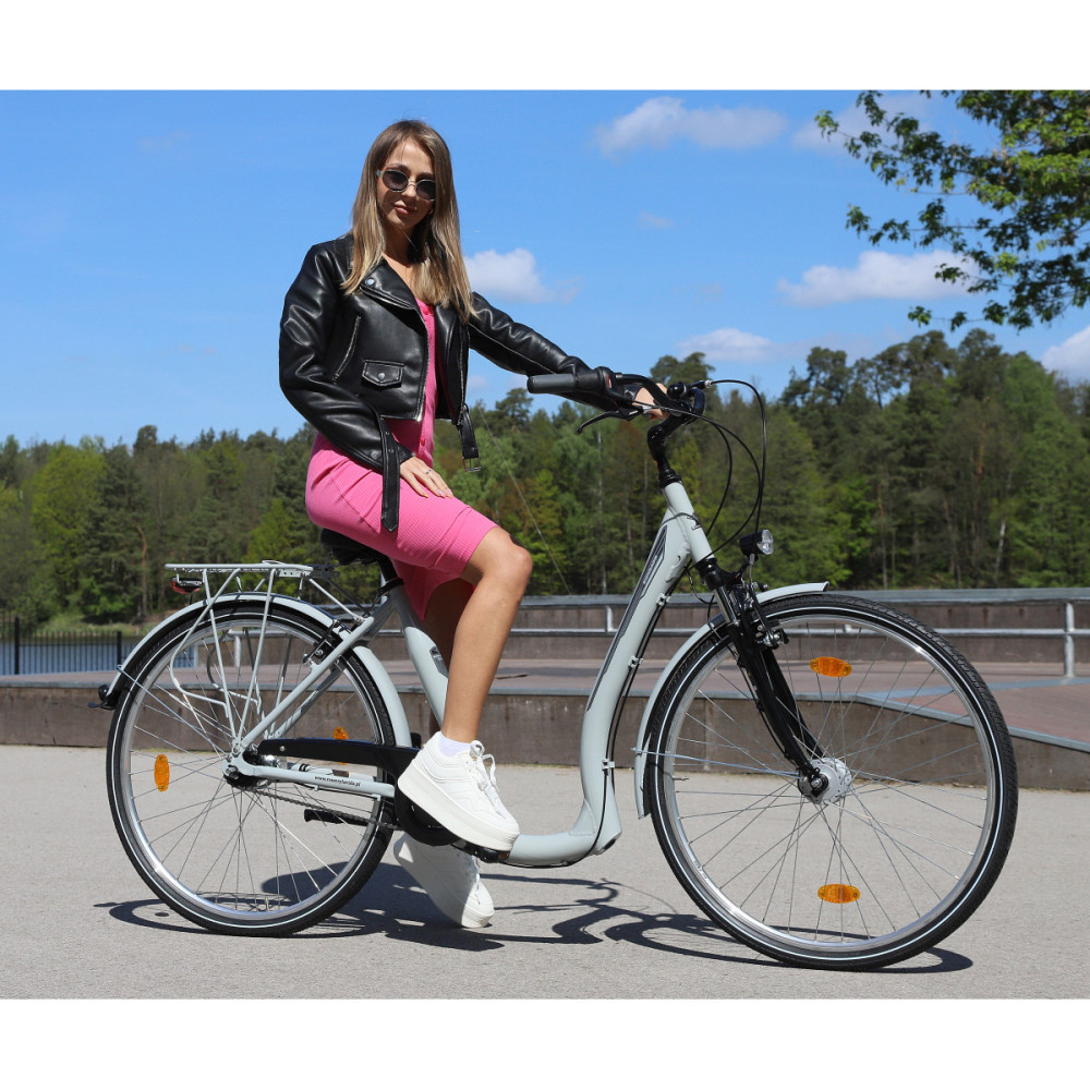 Klasickýmestský bicykel s nízkym rámom pre ľudí, ktorí majú problémy schrbtom. Rám je špeciálne profilovaný, aby uľahčil nastupovanie avystupovanie z bicykla. Bicykel je navyše vybavený nastaviteľnýmpredstavcom, takže môžeme nastaviť výšku a nastaviť vzdialenosť od riadidiel(bližšie-ďalej).