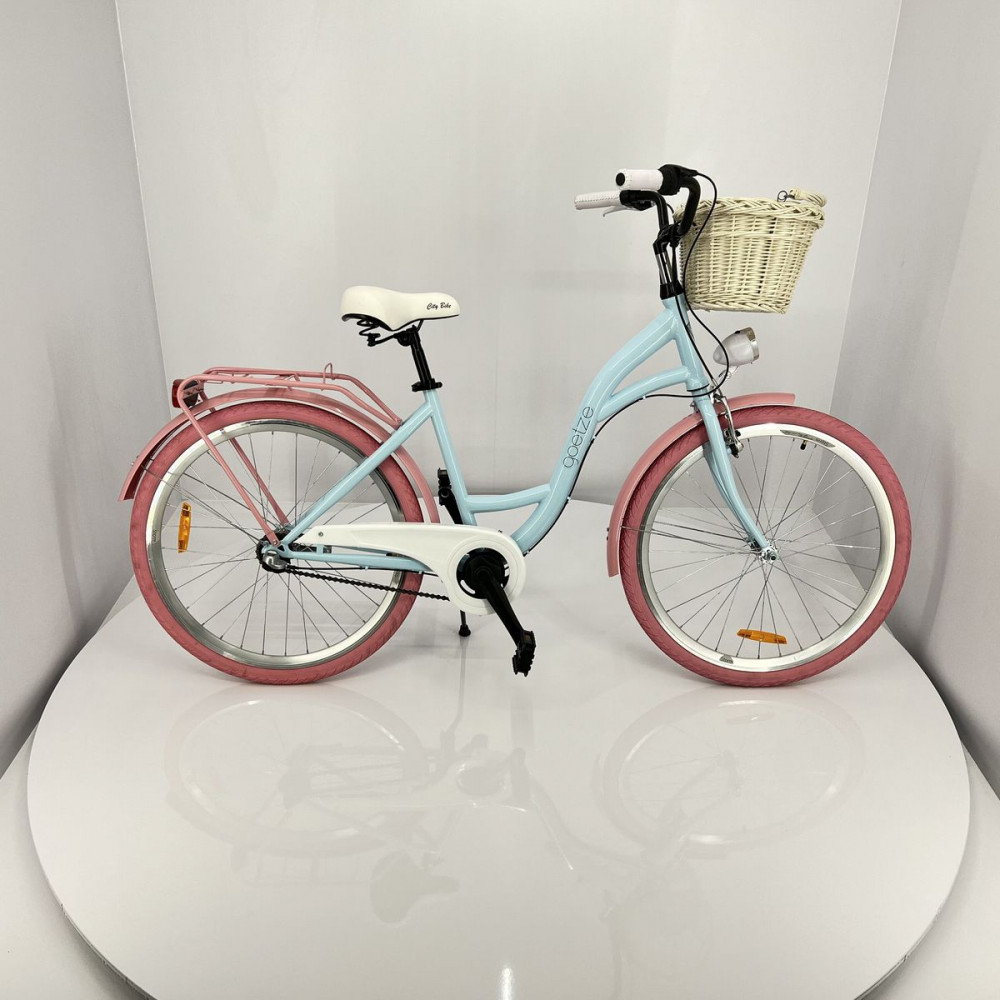 Vybavenie: blatníky, nosič,kryt reťaze, pedále, stojan, košík na riadidlá