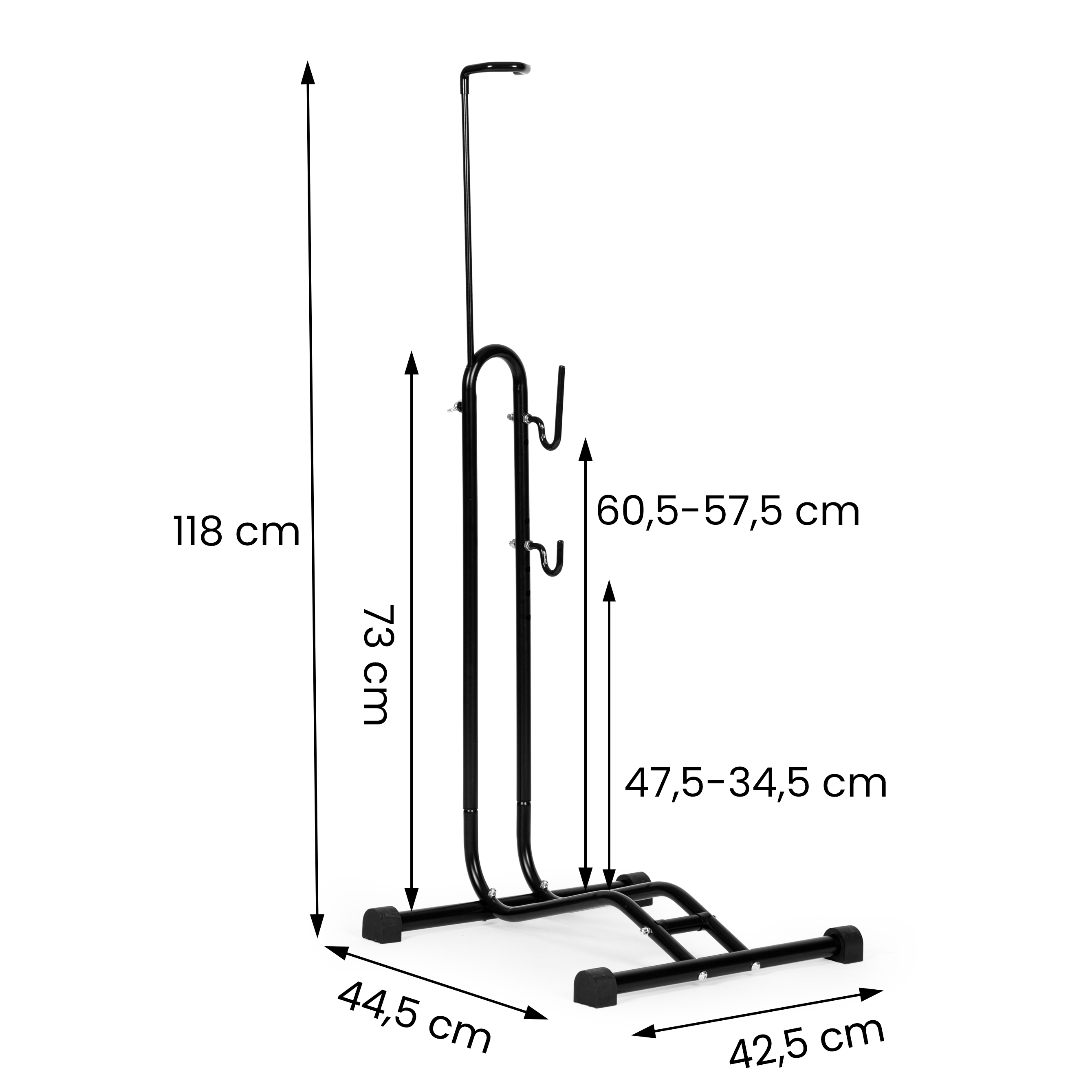 - Nastaviteľné držiaky: bez ohľadu na veľkosť vášho bicykla sa stojan na bicykel prispôsobí jeho rozmerom. Nastaviteľné rukoväte umožňujú presné prispôsobenie mestským, horským alebo cestným bicyklom a poskytujú im stabilnú oporu. Každá rukoväť je zakončená mäkkým materiálom, ktorý obmedzuje možnosť poškriabania rámu alebo komponentov bicykla.