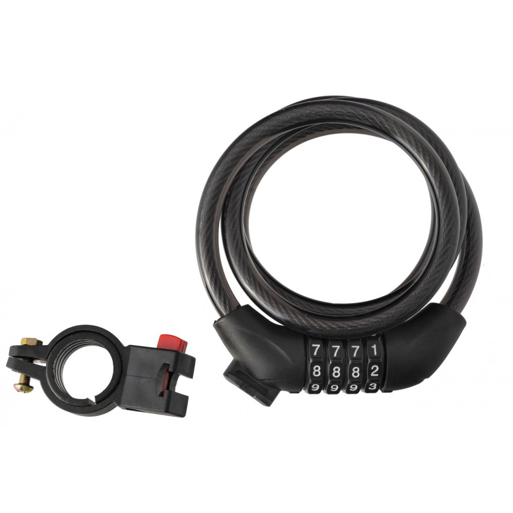 Zámok na bicykel - Špirálový Uzáver S Kódom 10x1200mm, Čierna+ Madlo